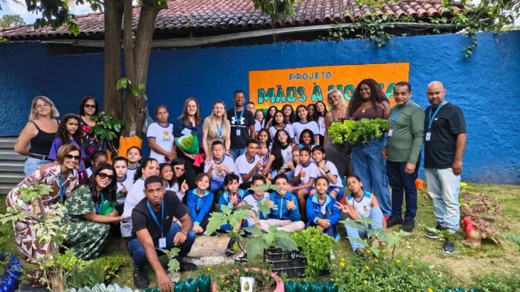 a terça-feira, 11/11, a Escola Municipal Intercultural México – Profª Nilcelina dos Santos Ferreira, em Santa Cruz da Serra, realizou a inauguração do espaço do Projeto Mãos à Horta, uma iniciativa que alia sustentabilidade, aprendizado e alimentação saudável.