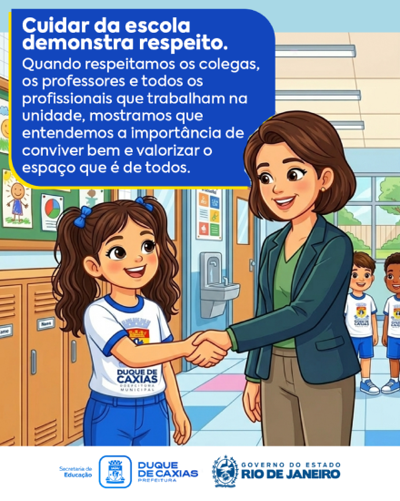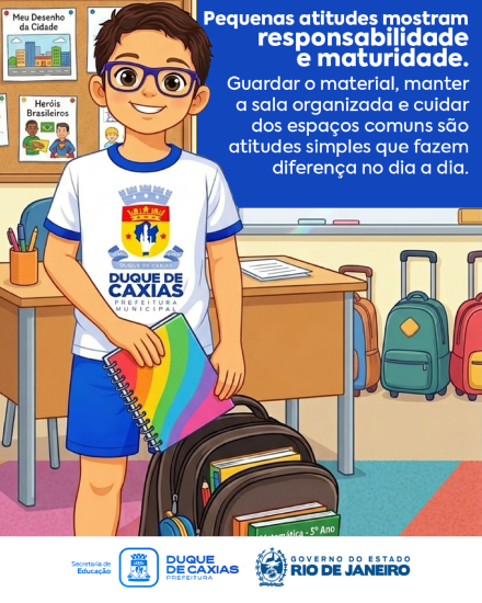 Pequenas atitudes do dia a dia fazem toda a diferença: guardar o material, manter a sala organizada, respeitar os colegas, professores e profissionais da escola, e preservar os espaços comuns. Esses gestos mostram maturidade e ajudam a fortalecer o sentimento de pertencimento.